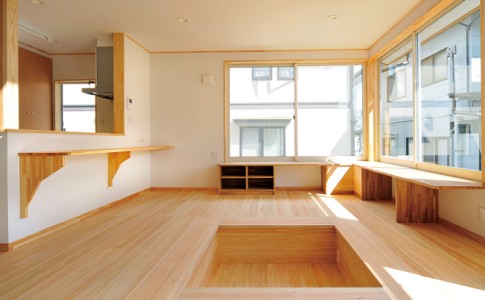 家族が繋がる「中央リビング」型の家…山形県米沢市